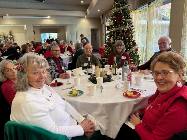Our Annual Holiday Party Extravaganza was held in December 2025 at the Brookview Clubhouse. Attendance was strong, and the event was transitioned from an evening gathering to a midday occasion this year. The meal was catered by Wilma Lott Catering of Martinez and featured Chicken Marsala, mashed potatoes, mixed seasonal vegetables, spring mix salad, French bread, and we served Bundt cake for dessert. During the event, Sharon Wilson engaged attendees with a series of questions, awarding gifts to the winners. The celebration was enjoyed by all participants.