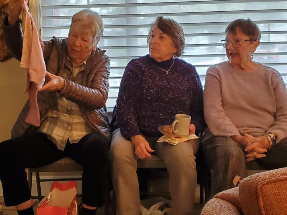 Our January 2025 Layette Shower was a successful as always. Janice Walker hosted with delicious muffins and coffee. Our donated items included many handmade items like quilts, blankets, sweaters and hats, and other adorable clothing, and diapers for new Moms and their newborns. Janice took our donations to Hillcrest Church where they collect all donations and make baskets for New Moms. In a time when there is so much need, our gifts will help reduce stress to Moms and bring lots of joy. Thanks to all for participating.