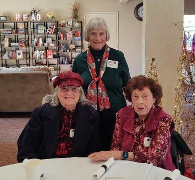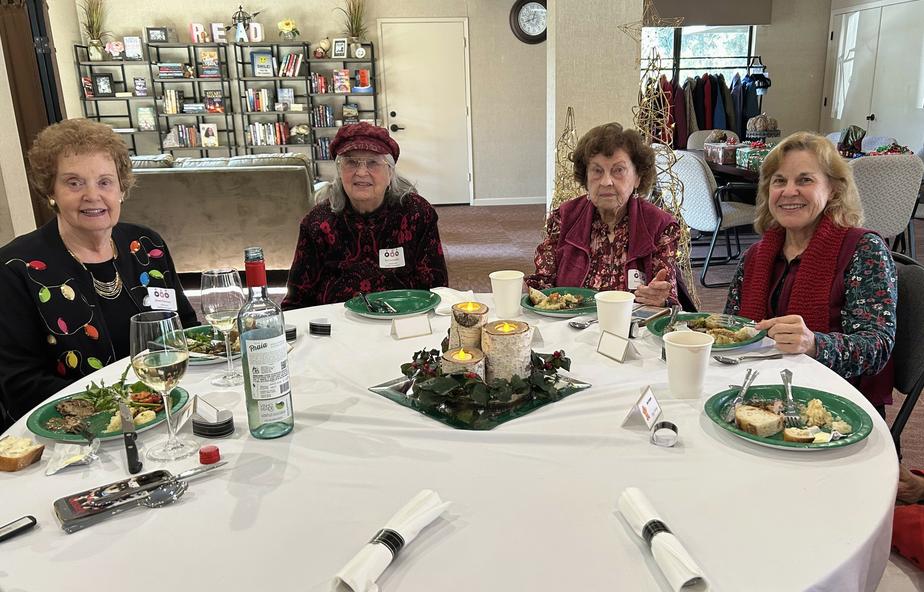 We had so much fun at our Annual Holiday Party, Magic Moments, in December 2024 at Brookview. Our dinner, CATERING BY CYNTHIA of scallops in Champagne Sauce and Stuffed Mushrooms as appetizers, Caesar Salad, Chicken Piccata, Cheesy Scalloped Potatoes, Sautéed Green Beans, and Tiramisu, Berry Custard Cakes, and Lemon Bars for dessert was delicious. Sandy Wolfe conducted her famous Box Game! A great time had by all!